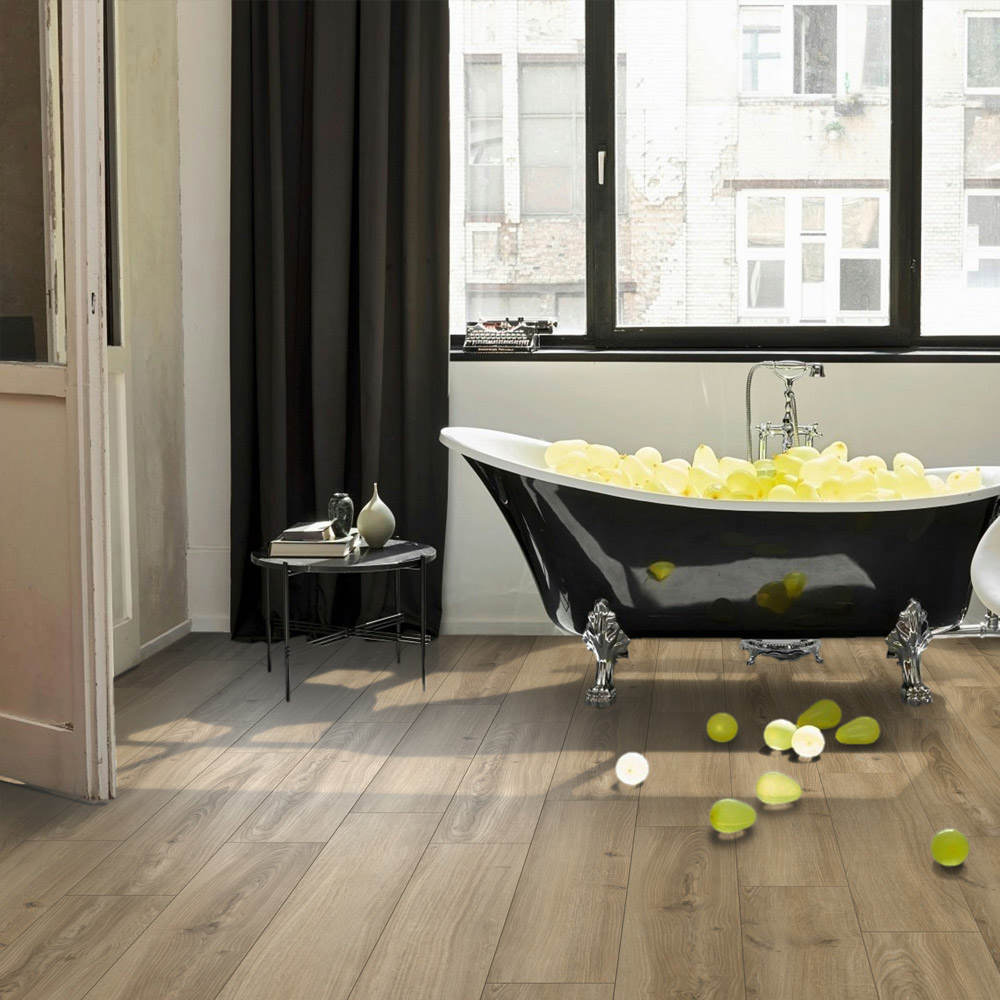 * Nota: Parador ha reformulado todos los modelos del Laminado Basic 400 para mejorar sus propiedades hidrófugas. Ahora, todos los modelos Basic 400 ofrecen una resistencia de hasta 24h en condiciones de agua estancada, por lo que son suelos aptos para su instalación en cocinas y baños. Para mejorar esta capacidad hidrófuga, los modelos de la colección incorporan también una protección en los cantos contra el hinchamiento que reduce las filtraciones de agua en el interior.