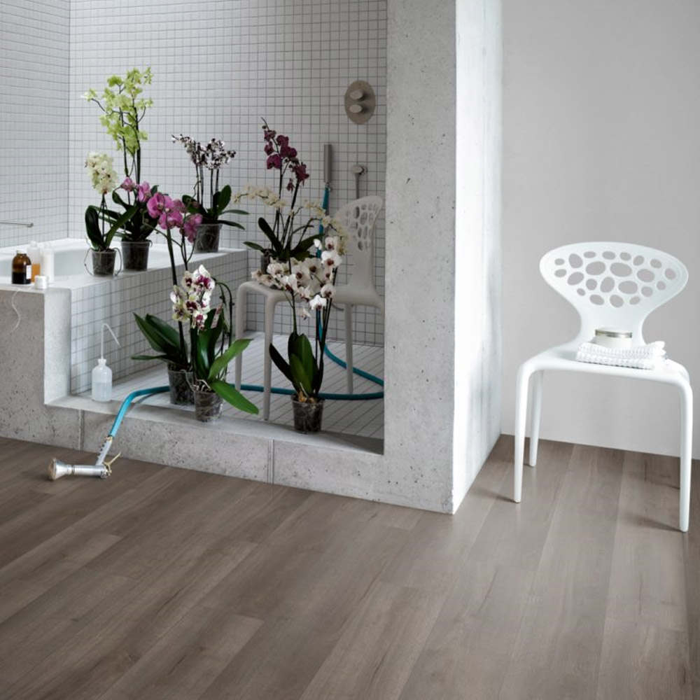 Gracias a su avanzada tecnología hidrófuga, estos suelos son aptos para su instalación en estancias húmedas, como cocinas y baños, brindando una protección de hasta 48 horas contra el agua estancada. Para un sellado óptimo de la pieza, los modelos incluyen también una protección perimetral contra el hinchamiento de los cantos.