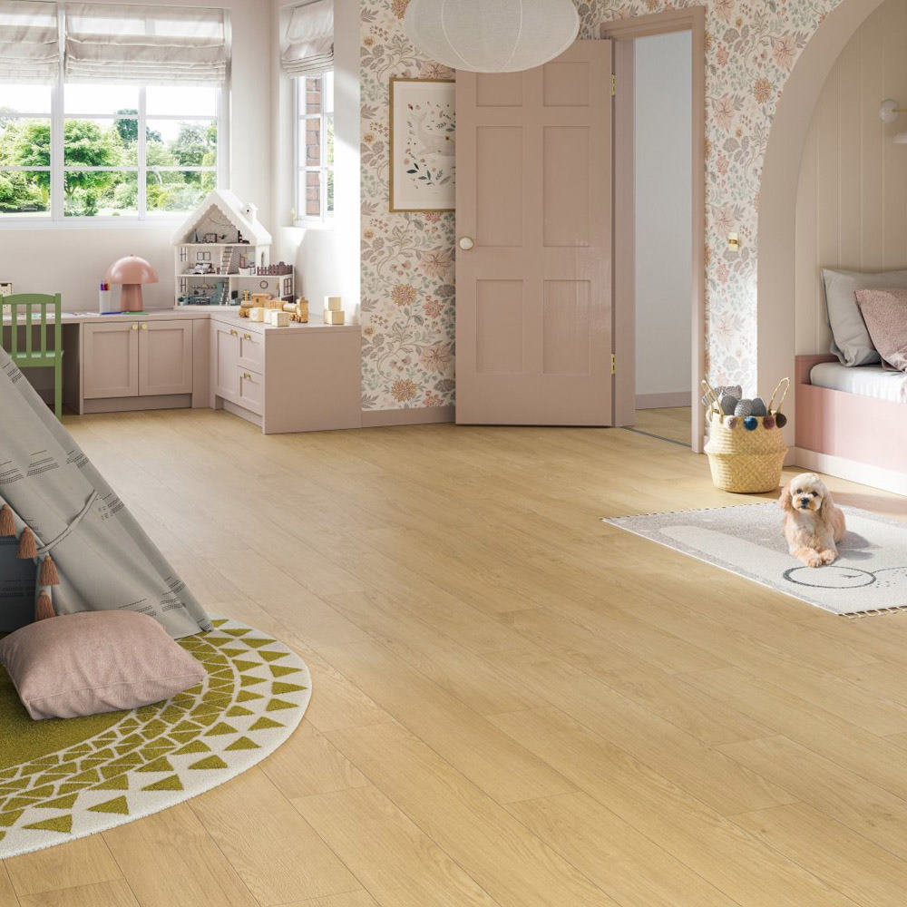 La capa protectora AC5 ofrece una alta resistencia al desgaste, especialmente a los arañazos. Esto aporta una gran durabilidad al pavimento, que tiene una garantía lifetime para el uso doméstico.