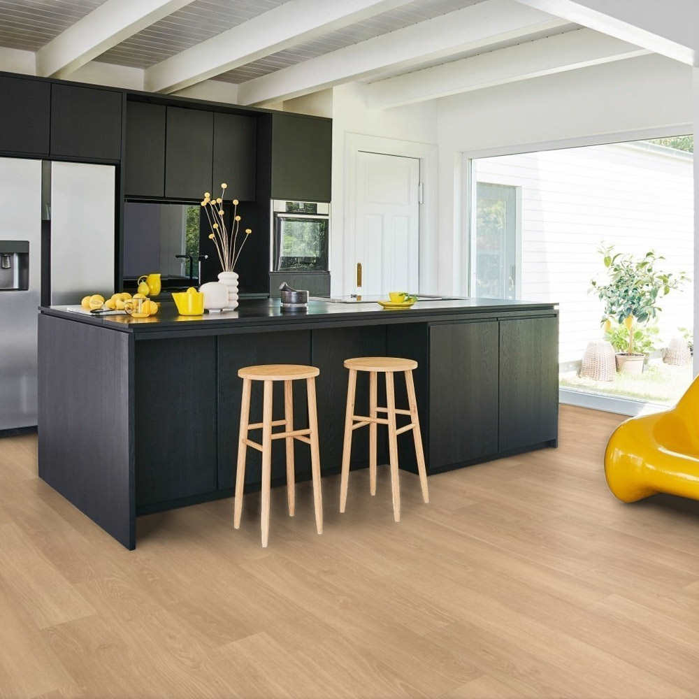 El modelo Roble Studioline Natur AC5 se presenta en formato de una lama. Este suelo laminado se presenta con un aspecto muy natural, gracias a la estructura mate natur de la superficie, que imita de forma muy realista las vetas y nudos de la madera de roble. El modelo dispone también de bisel a los cuatro lados, lo que aumenta la sensación de mayor autenticidad del pavimento, emulando con gran calidad el suelo de madera natural. El tono medio encaja muy bien en espacio amplios y reducidos, creando ambientes cálidos y acogedores.