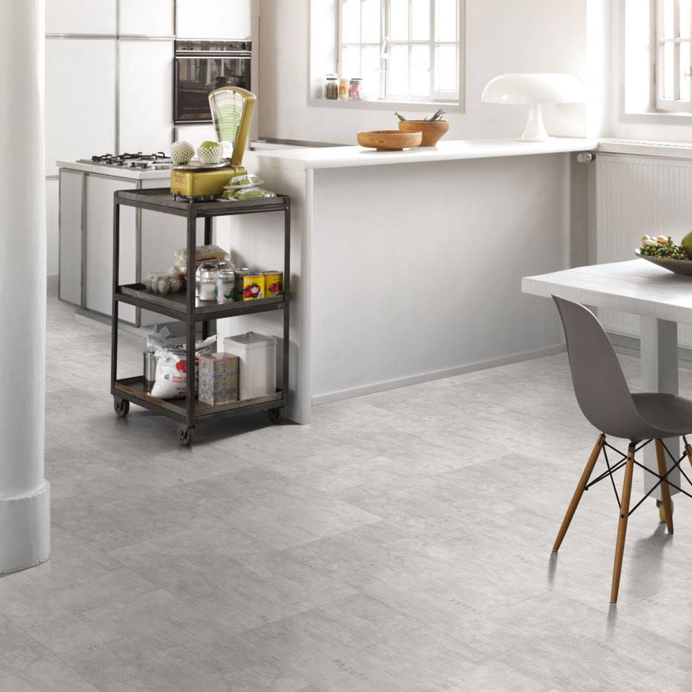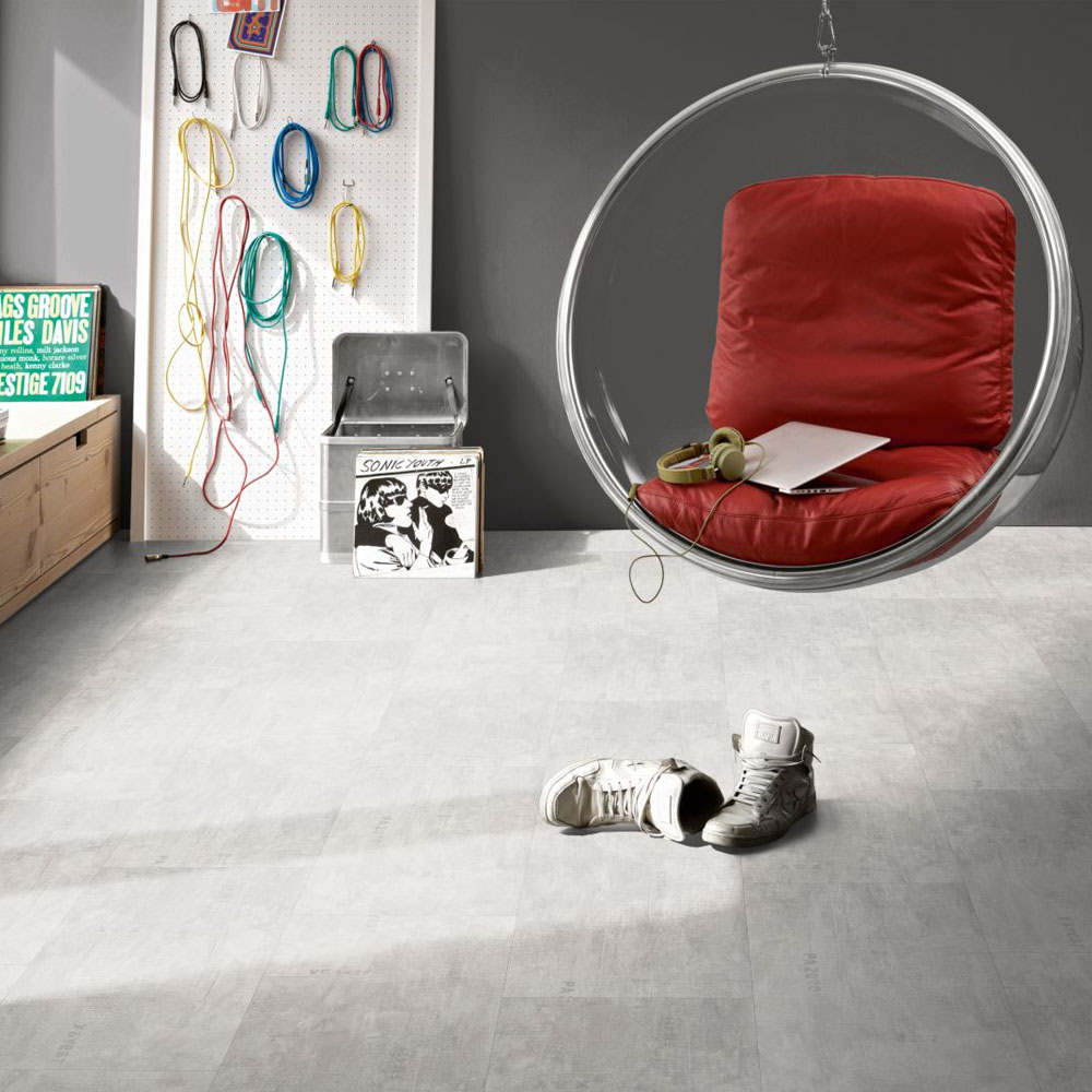 El modelo Industrial Canvas White se presenta en formato de baldosa grande, con un grosor total de 6 mm. Este modelo pertenece a la serie Iconics de Parador y ofrece un diseño muy original donde se aprecian marcas visibles en la superficie que le confieren un aspecto único y original y lo hace perfecto para estilos de decoración industrial. Por su clara tonalidad, es un pavimento perfecto para estancias reducidas, donde aporta claridad y amplifica el espacio. Su estructura mineral auténtica es visible en el sellado de relieves de la superficie, que imitan los suelos de piedra, y donde se pueden apreciar pequeñas irregularidades. El modelo presenta bisel en todo el perímetro de la pieza, que aumenta la sensación de realismo.